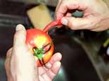 | 一 . | 沸騰した湯にトマトをちょっとつけ、湯むきする。縦に4つに切り、ヘタを切り落とし、各々を4等分し、種をざっと取り去る →[写真 一] |