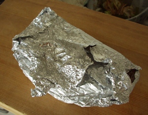 | なんだこりゃ、惑星外物体か? いいえ、煮上がった豚耳なのですが、ホイルにくるんで冷凍したら、ホイルがはがれなくなっちゃった。後日、解凍し、あえものにしたときに写真差し替えま〜す |