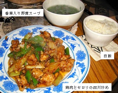 これは豆板醤を炒めて軽い甘酢で味付けした四川料理でポピュラーな味付けである。この味付けにはセロリやキュウリみたいな野菜が合うんだよね、なぜか。特に僕はセロリとこの味付けの取り合わせが好きである |