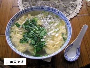 鶏スープがあると簡単に汁ものが作れるね。これはご飯にスープを注いだだけのお茶漬け。二日酔いの昼飯に最高! 旨すぎ! |
