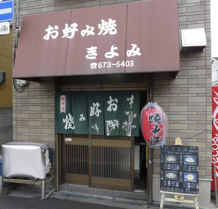お好み焼きチェーン店も多くあるが、まだ街には個人営業のお好み焼き屋も残っている。店舗の姿はまちまちで、とくに統一された外観はない。この写真は、昭和の時代に典型的な街のローカルなお好み焼きの姿である。看板にかならずお好焼きの字が明記されているので間違えることは無い。