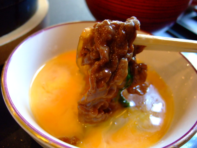 ちなみに関西では、牛肉を焼いたあと、醤油、砂糖、酒などの調味料をじかに回し入れ、全体に比較的水気を少なく調理して食べる方法が一般的のようである。