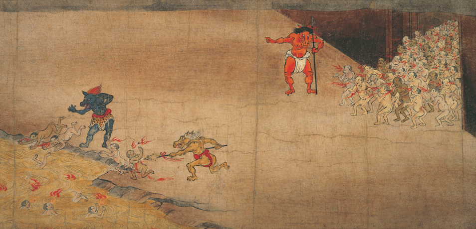 ここで提示されている地獄は、生前に仏の道を外れた僧侶が堕ちるところで「沙門地獄草紙」とも言われる。詞書も入手できないものがあり、さらに詞書があっても解読が済んでいないので、解説にはネット上で調べた分かる限りのことを書いておく。