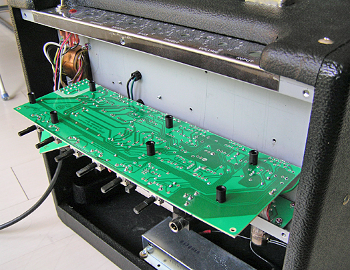 これは、ブルースジュニアにはついていない、いわゆるPRESENCEコントロールを付加する、という改造である。実は、この改造によりトーンはかなり劇的に変わる。ブルースジュニアではまあまあな量のNFB(負帰還)がかかっており、このPRESENCEによりそのNFBを調整できるようにし、全開のときはNFBをほとんどオフにできる(無負帰還状態)のである。PRESENCEの原理については僕のサイトのココを参照していただきたい。