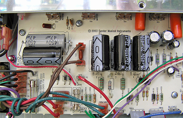 とにかく、そんなわけで、前回の秋葉で購入したPRESECE CONTROL用の小VRの取り付けと、通販で購入した電解コンデンサーによる電源フィルターコンデンサの正規増量をライブ前の駆け込みで前日に決行した。