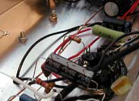 次は、当初から後付けするつもりだった負帰還をやってみた。ジェラルドさんの改造ノウハウによると、オリジナル回路の負帰還の量を減らすことでパワーと歪みによるハーモニックスが得られる、とある。ワニ口で、100kΩの半固定を、トランスの2次側から2段目のカソードへつないでみた。このとき始めて負帰還による音の違いがいかに劇的かが分かったのは収穫だった。半固定を絞って行くと、明らかに低域と中域が延び、丸い音になり、ノイズも減って行く。ちょうどオーディオシステムのマイク入力にエレキを突っ込んだような音である。そこで、負帰還をきつめにかけた状態で、入力にCDプレイヤーをつないでみると、うん、なかなかオーディオ的にも良い音だ。そうか、今度こういうオーソドックスなオーディオアンプも作ってみようか、と思わせるものがあった。