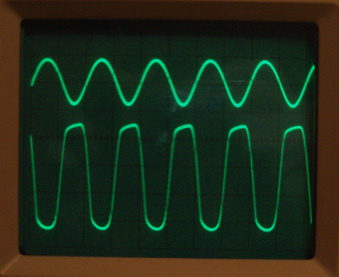 2段目で上下クリップし始めるころには、4段目で激しく上下クリップしているので、ほとんど方形波になっている。