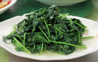 中国で定番の青菜炒め、どこで食べても相変わらずのうまさ