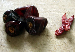 朝天辣椒 ![]() 写真の左側が朝天辣椒で、右側が日本の鷹の爪である。四川で一般的に使われているトウガラシ で、ふっくらとして、大きくて、赤黒い色をしている。よく、強烈な辛さを持つ、などと言われているようだが、実際に使ってみると、日本の鷹の爪より辛みはずいぶんと弱く、逆に香りが強い。昔はほとんど売っていなかったが、最近は四川料理の人気の上昇にしたがって、中華街などでもけっこう置くようになった。どうしても見つからない時は、ネットで検索すると通販で買えるので利用するとよい。 油 ふつうのくせのないサラダ油でよい。市販のらー油のようにゴマ油は使わない。四川省での辣油の製法を調べてもふつうの油で作っている。 1)トウガラシのヘタとタネを取り除く ![]() 一般的にタネの辛みが強いと言われている。当たり前のことだが、この作業をしたら丹念に手を洗うこと、あるいは手袋をして行うこと。手を洗わずに粘膜に触ると痛くて大変な思いをする 2)ミルで挽く ![]() ミルにかけて荒挽きにする。あまり細かくせず荒めにする。これを大きめのボールに入れ、上から水をふりかけて湿らせておく。これは後で熱い油をかけたときに過度に焦げてしまわないようにするためである。 3)油を熱する ![]() 油300ccを火にかけ、ショウガを入れ、180度ぐらいになるまで熱する。ショウガを揚げるのは、油に若干の香り付けすると共に油臭さを抜くためである。 4)トウガラシに油を注ぎ入れる ![]() 油を若干冷まして、ボールのトウガラシに注ぎ入れ、杓子で軽くかき混ぜ、すぐにふたをする。トウガラシの蒸気がもうもうと立ち上る感じになるので、この香りが逃げてしまわないようにふたをする。荒熱がとれたらラップをして、できれば一昼夜おいてなじませてから使う。