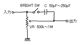 | BRIGHT回路の周波数特性(C=120pF, VR=1MΩで音量1/4に絞ったとき) |