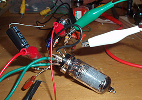 ギターアンプでも初段に5極管を使ったりしたVoxのアンプやその他、若干だけれどある。なぜあまり5極管を使わないかは、はっきり分からないが、部品の点数が増える、というのもあるが、歪み方が3極管と異なる特性があり、そのせいもあるかもしれない。これについてはこの章の最後で少し述べることにしよう。