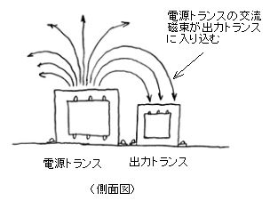 | (a) 電源トランスと出力トランスが接近しすぎた時 |